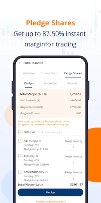 - Get up to 87.50% margin with pledge shares on our trading app