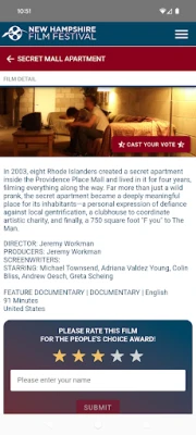 The app will also be your source for official news, including detailed information on screening locations and a festival map including walking directions so you don't miss a beat! You can also rate your favorite film for the People's Choice award!