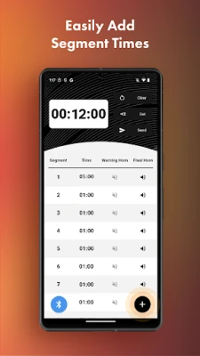 o Sync the app with your LED Segment Timer, featuring large, bright 6" digits for full-time and segment display, alongside a bold 12" timer.